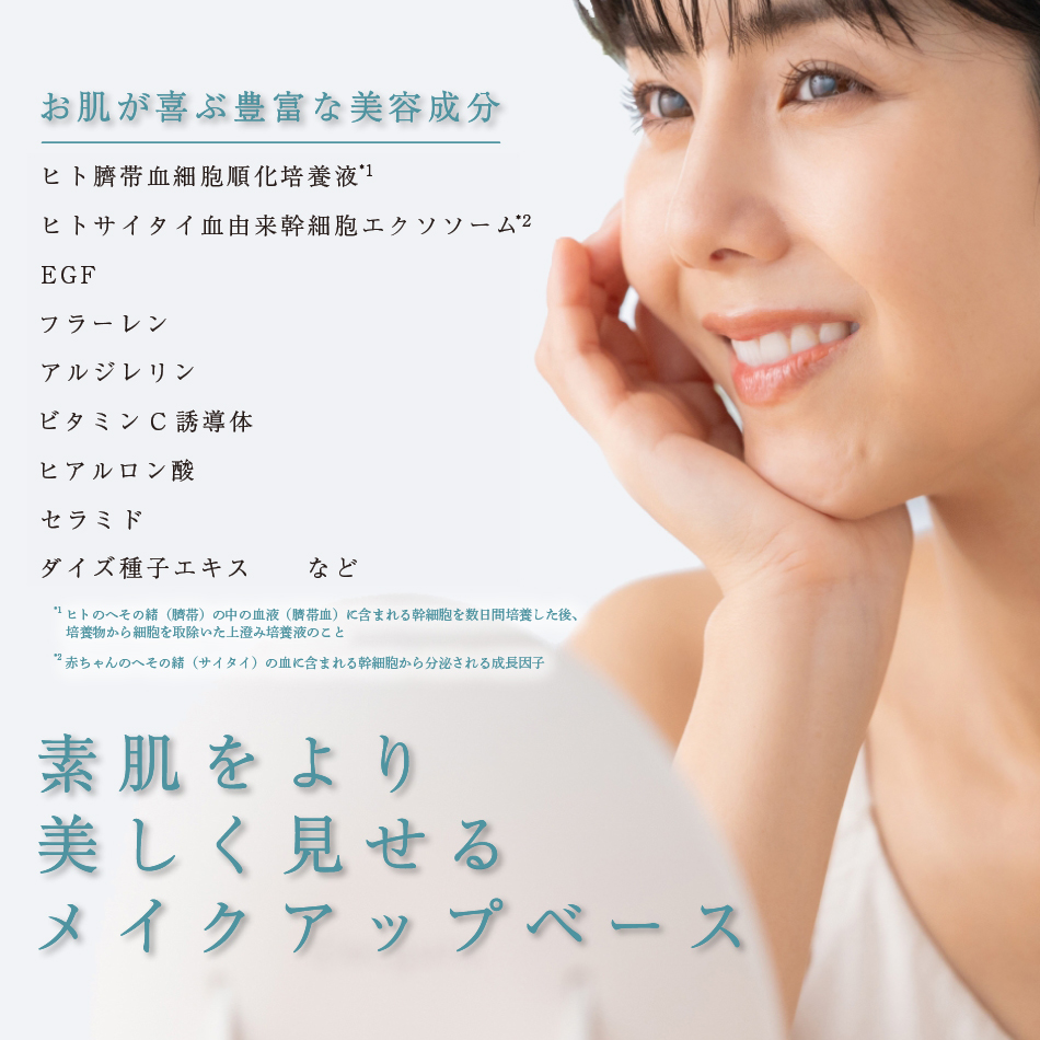 ヒト臍帯血細胞順化培養液・ヒトサイタイ血由来幹細胞エクソソームなど、美容成分を贅沢に配合。